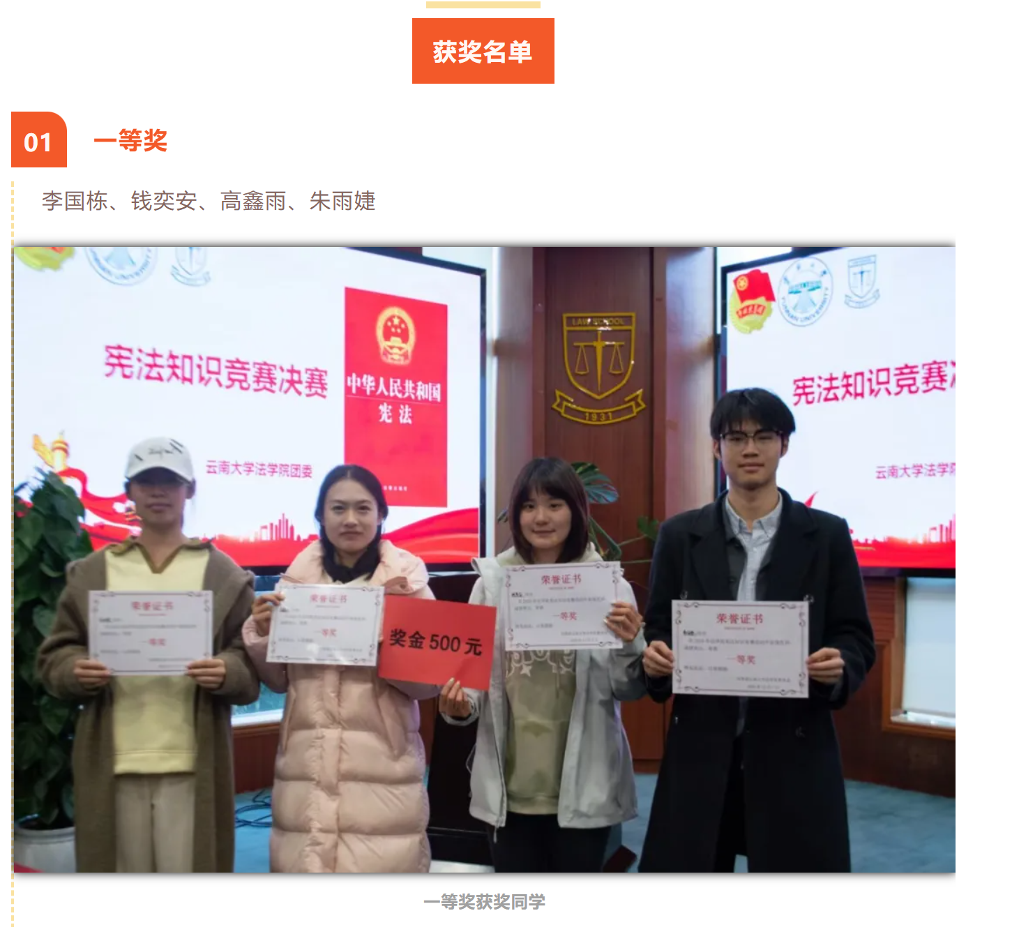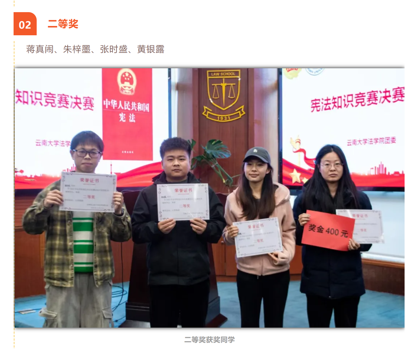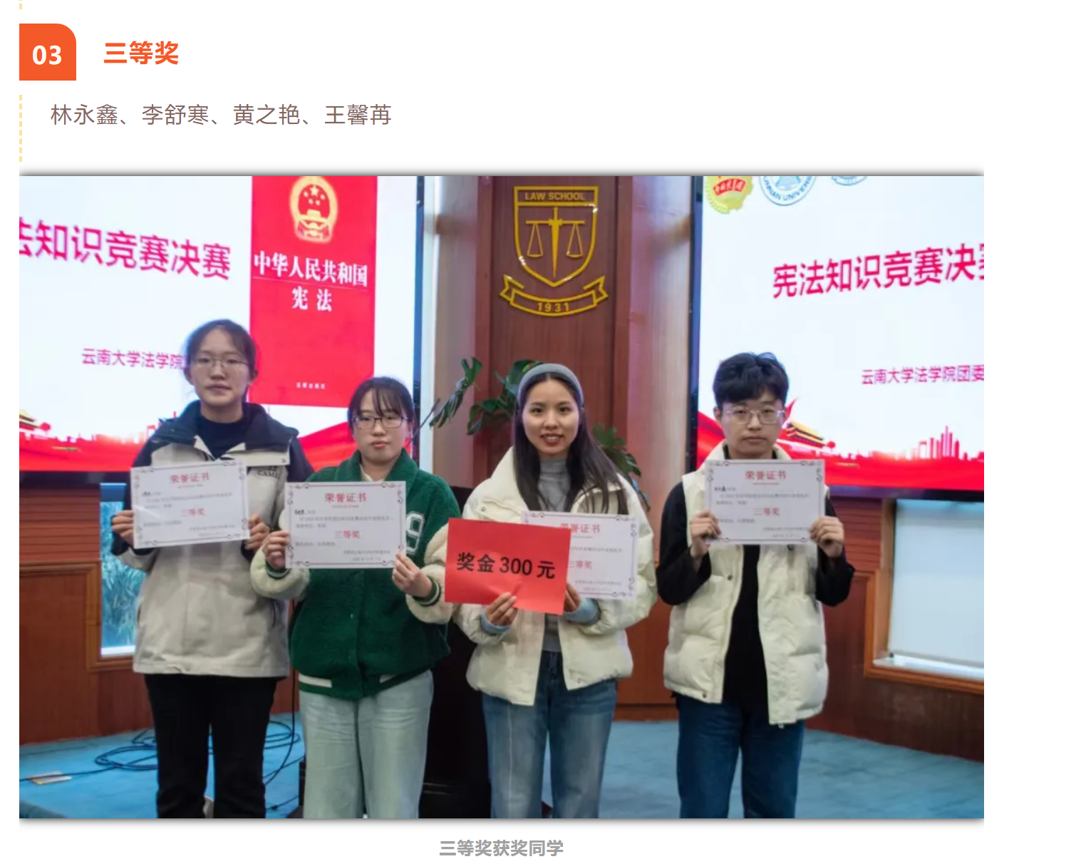 本次宪法知识竞赛不仅是一场知识的竞技,更是一次法治精神的洗礼。比赛虽已落幕,但宪法学习永远在路上。希望全院师生以此次活动为契机,持续深化对宪法精神的理解,将其内化于心、外化于行。 让法治信仰的种子在云大校园生根发芽,共同书写新时代法治青年的独特篇章!
