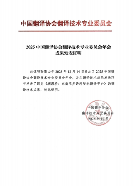 本次年会由中国翻译协会主办,聚焦翻译技术前沿发展与行业应用,旨在推动高校、企业和技术社群在智能翻译、人机协同等领域的深度交流与合作。年会期间还举办了多场贴近翻译实践与技术趋势的专题活动,后续将陆续开展“智能翻译译后编辑”“智能体搭建”等系列实务交流。