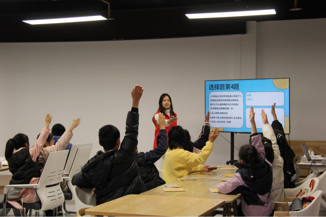 实践期间,她参与检察院日常履职,完成文书档案整理。同时参与“守护童年,法伴成长”寒假托管班普法行动,与检察官共同将《未成年人保护法》转化为情景剧,通过角色扮演、快问快答等形式,为留守儿童讲解防范校园欺凌、网络陷阱等知识。此外,施赵乙嘉同学协助撰写宣传稿、编辑普法推送,扩大法治传播影响力。