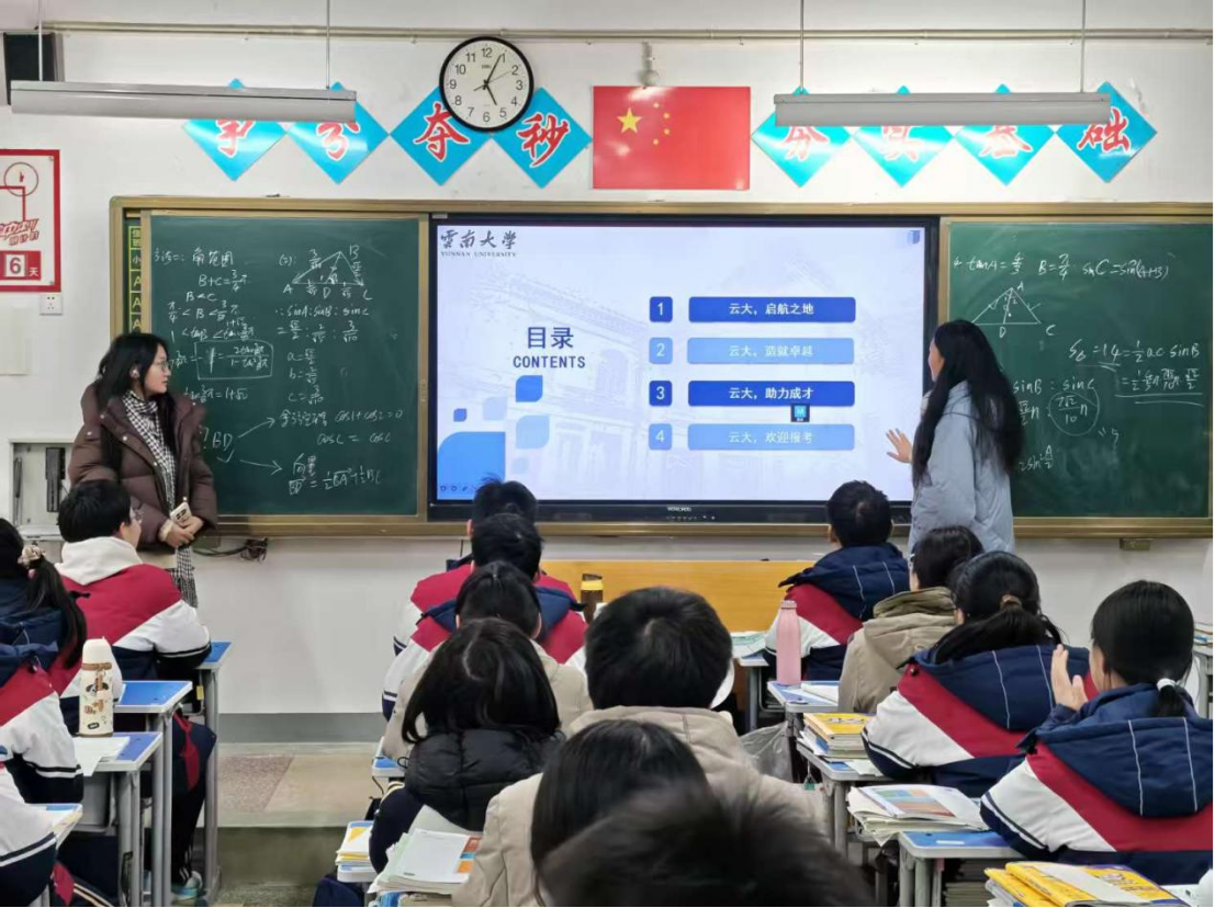为响应学校“返家乡”社会实践号召,充分发挥大学生榜样引领作用,助力高三学子备战高考,寒假期间孙一丹同学回到母校南阳市第一完全学校,开展校园宣讲与学习经验分享实践活动,帮助学弟学妹明确目标、缓解备考压力,同时践行青年责任与担当。 本次宣讲在高三班级教室开展,氛围轻松务实。结合自身在云南大学的学习生活经历,向同学们介绍云大校园环境、专业特色与“会泽百家,至公天下”的精神内涵,展示真实丰富的大学生活。同时结合个人高考备考经验,从课本回归、错题整理、时间规划、心态调整等方面分享实用方法,坦诚交流高三备考中的压力与困惑。宣讲后还耐心解答同学们关于志愿填报、分数参考、大学生活等问题,一对一交流答疑,切实为学弟学妹提供参考与帮助。