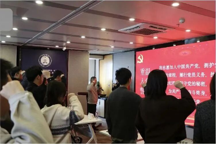 党性教育环节,周桐副书记带领全体党员面向鲜红党旗,庄严举起右拳,重温入党誓词,铿锵有力的誓言回荡全场,深刻彰显了全体党员坚守初心、践行使命的坚定信念与责任担当。