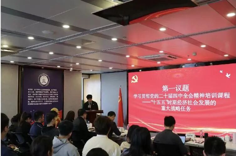 理论学习环节严格落实“第一议题”制度,内容务实、形式多样,切实推动学习入脑入心、见行见效。该事务所第一党支部党员代表带领全体人员深入学习习近平生态文明思想,引导大家运用法治思维和法治方式践行绿色发展理念,并结合自身工作实际分享学习收获与实践思考。随后,全体参与人员共同观看党的二十届四中全会精神专题培训视频,我院本科生第一党支部、学术型硕士第一党支部代表先后发言,围绕“十五五”时期经济社会发展的指导思想、重大原则、根本保证及重点战略任务,畅谈学习体会、交流思想认识、明确前进方向,推动理论学习往深里走、往实里走、往心里走。