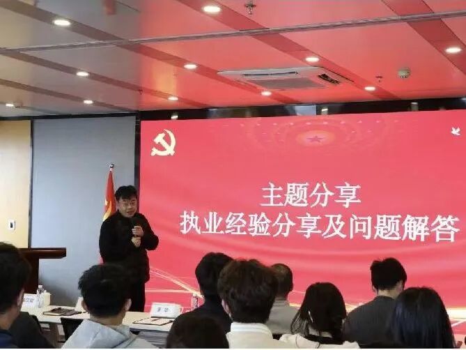 该事务所党总支副书记罗华围绕“三个多”,详细解读了律所完善的人才保障体系,为青年法律从业者成长保驾护航。一是培训全覆盖,构建起新人入职培训、每周常态化培训、总分所联动培训相结合的多层次、全方位培训体系;二是指导全方位,为每位新人配备合伙人或资深律师作为专属导师,实行一对一帮带,团队师兄师姐随时提供帮扶支持,全体合伙人也积极分享从业经验、传递专业知识;三是保障全方位,入职即签订正式劳动合同、足额缴纳社会保险,实习期间不仅发放实习津贴,还为实习生购买并办理意外险,同时免费提供阿尔法/AI法律科技账号,助力青年法律从业者快速提升专业能力。此外,他还就同学们普遍关心的薪资待遇、人员构成等问题,进行了详细说明和耐心解答,消除大家的就业困惑。